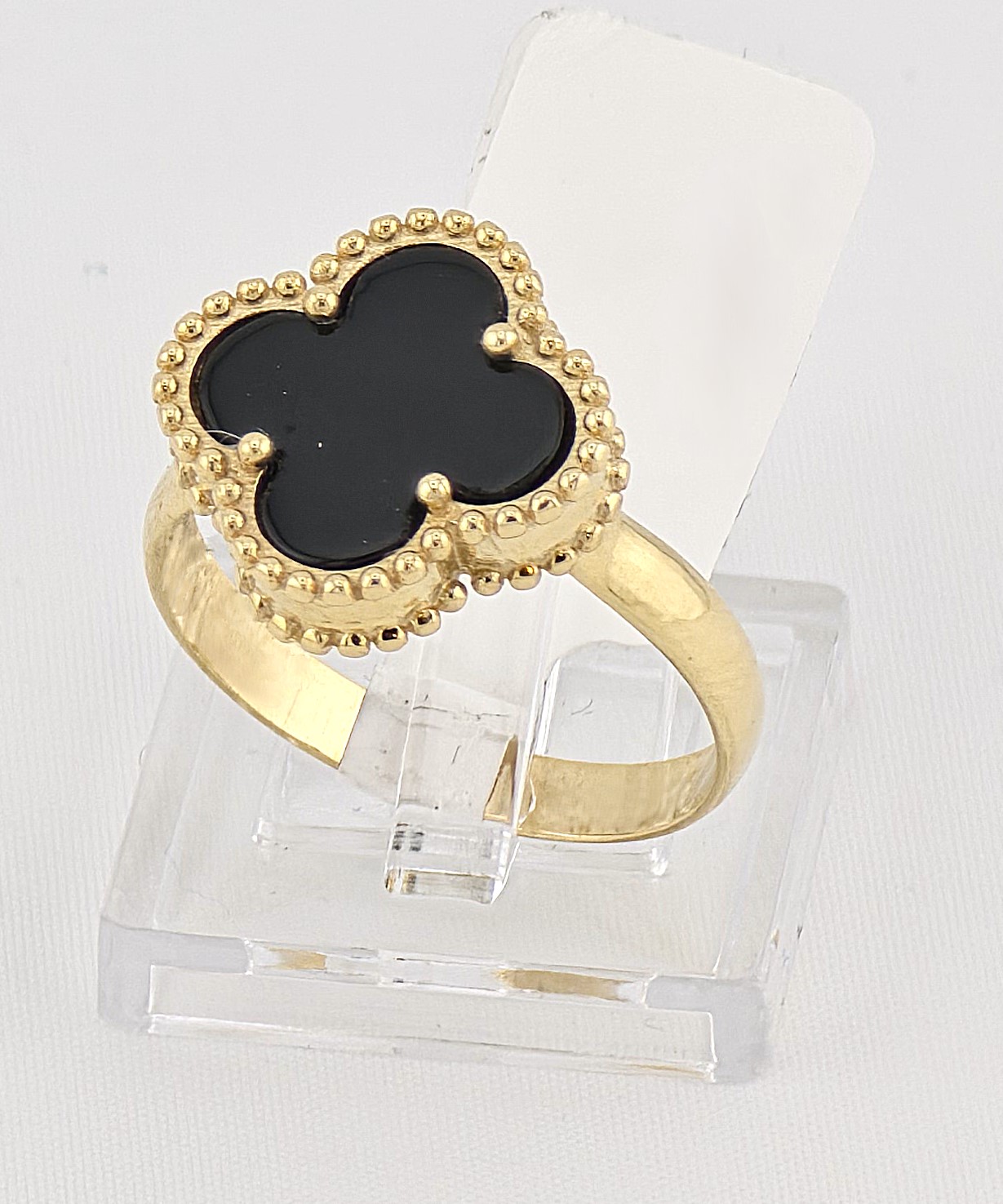 ✨ 14K Yellow Gold Black Onyx Clover Ring ✨