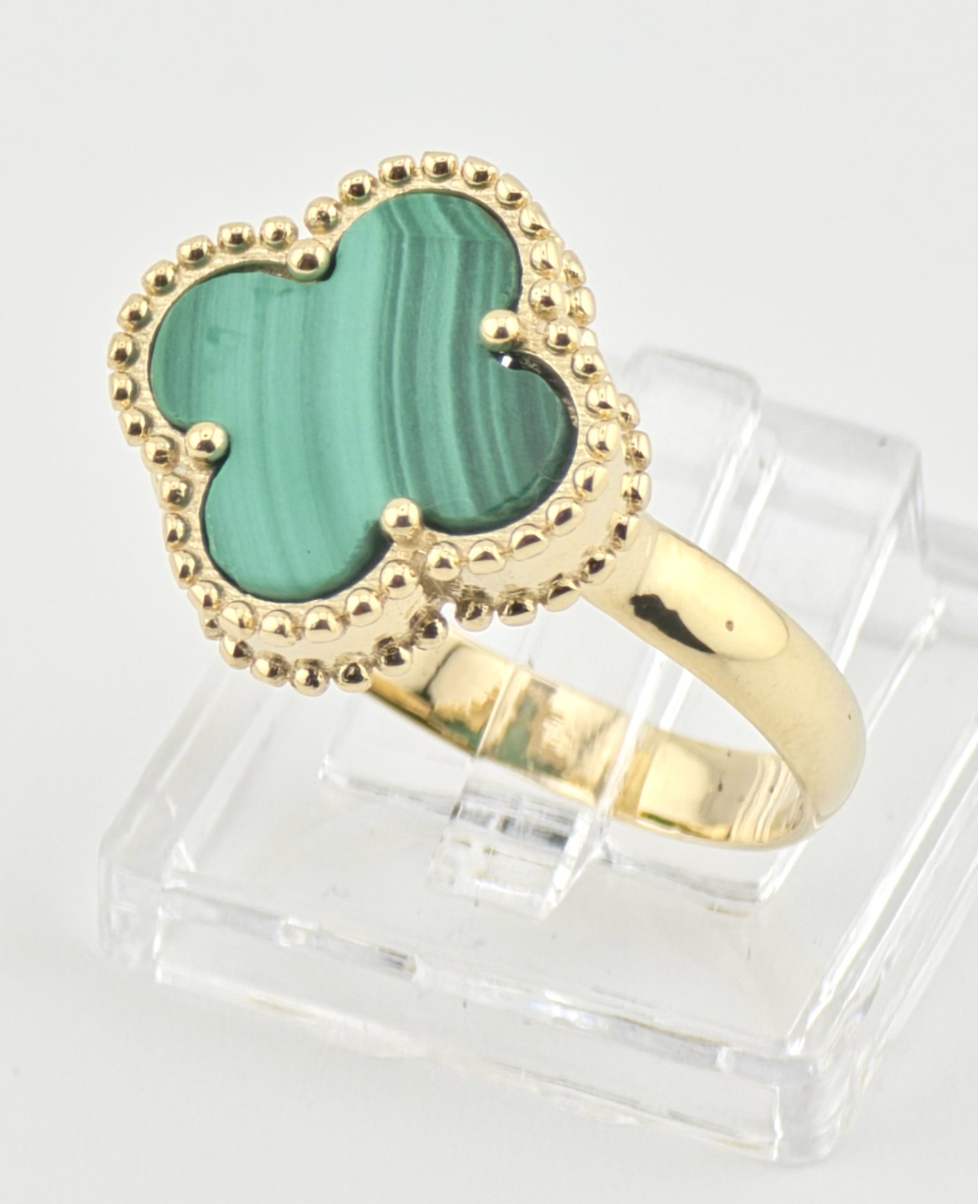 Be the first to review “💚 14K Yellow Gold Malachite Clover Ring”
